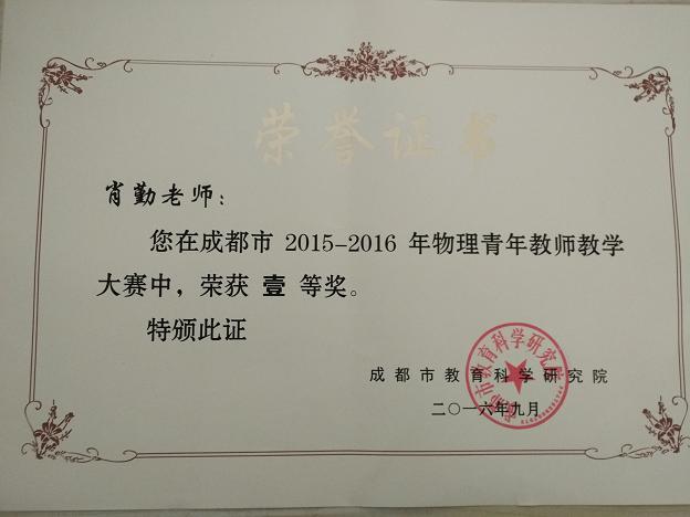 我校肖勤老师荣获成都市赛课一等奖