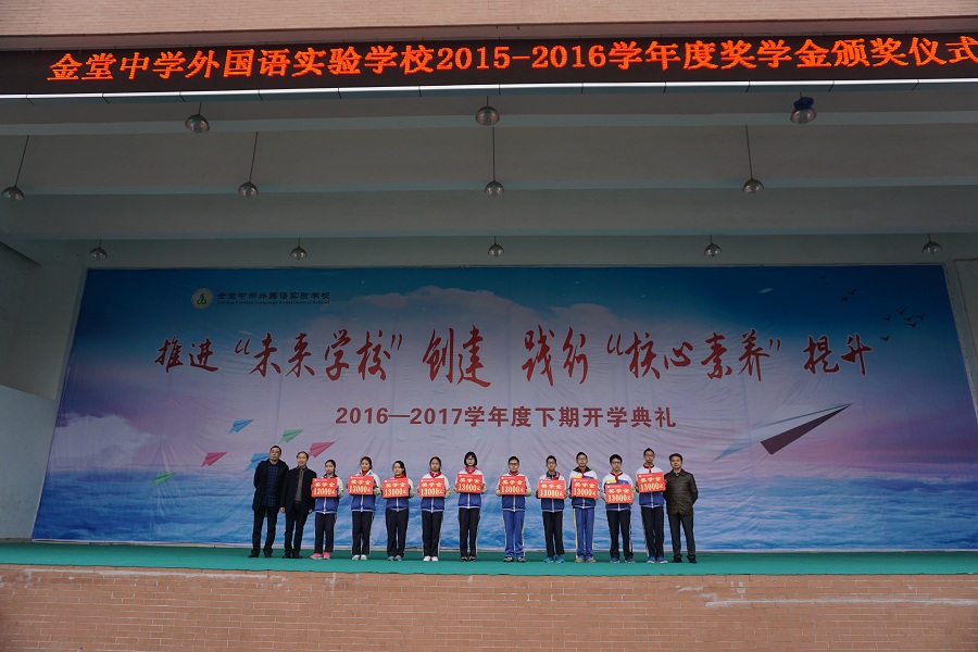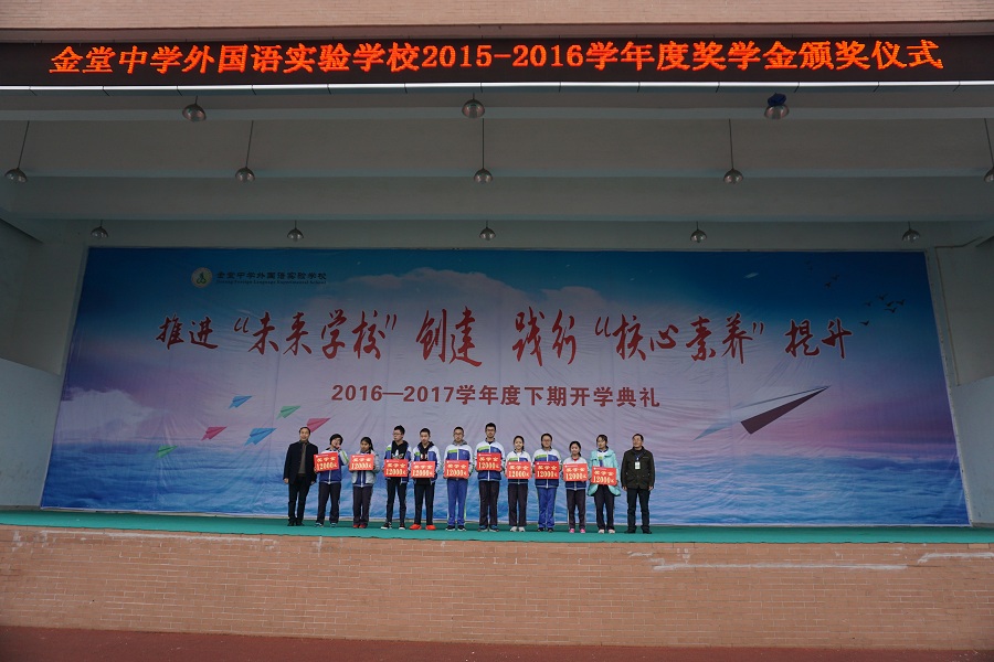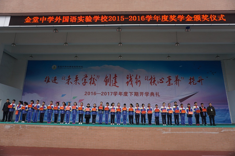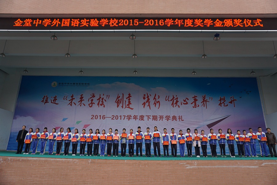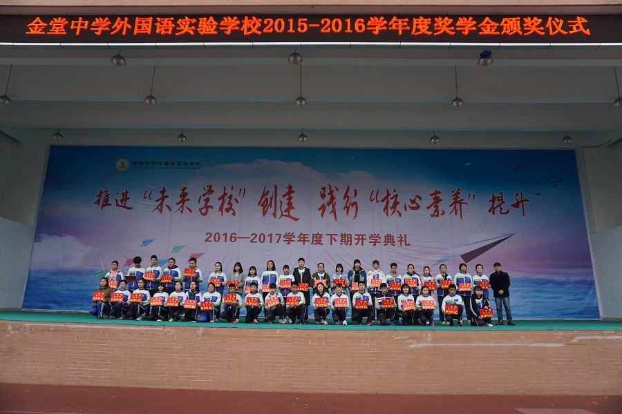 2月20日,我校2015-2016学年度奖学金颁奖典礼在庄严的国歌中拉开序幕。全校3500名师生齐聚在运动场参加了本次开学典礼。