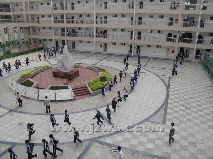 2012年5月11日下午14:00点,随着唐中福校长一声令下,拉开了金堂中学外国语实验学校师生应急疏散演练的序幕。全校3500余名师生在短短两分钟内,全部有序疏散到了指定位置。