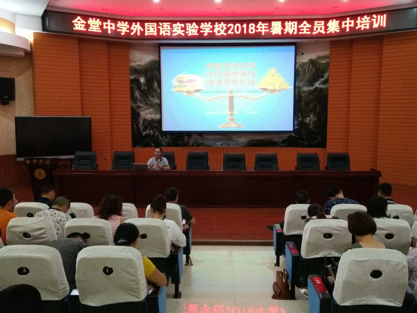 2018年8月20-23日,学校老师已经一如既往的提前上班,参与暑期教师集中培训,本次培训学校聘请了陈大伟教授就《教师核心素养与专业发展》、白芸教授就《新媒介时代的学校文化建设》、袁明辉院长就《新时代背景下的师德探讨》等方面进行了讲座;学校还印发了 《十九大报告》要点,《习近平总书记来川讲话》要点,《中共中央、国务院关于全面深化新时代教师队伍建设改革的意见》、《成都市规范办学》等资料,要求全体老师认真学习,并写出学习心得。8月29日,学校还组织英语老师进行了培训。