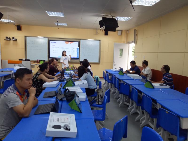 2018年7月2-5日,2018年8月27-28日,学校两次聘请专家,分学科教研组对教师进行平板教学的实际操作培训,专家们将智慧课堂中每一个细小功能的操作实践进行了详细的解释和演示,对老师们在培训过程中的问题进行了解答,老师们在互动交流中得到了收获与提升。老师们还主动提前进入班级与,学生一起进行开学前的课堂实际操作演练。