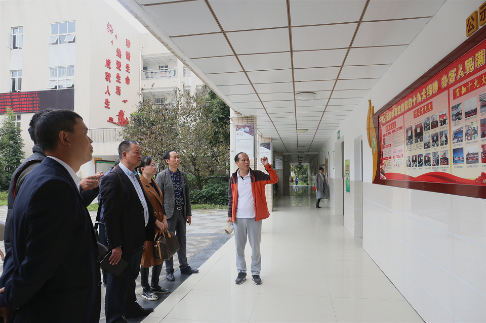学校责任督学、社区教育学院院长袁明辉,学校党总支书记、校长唐中福等陪同伍晓霞一行首先参观了校园党风廉政教育基地建设的情况。党建宣传栏、党员示范班、党风廉政文化长廊、廉政文化石、廉政文化墙和廉政主题浮雕给来访的客人留下了深刻的印象。