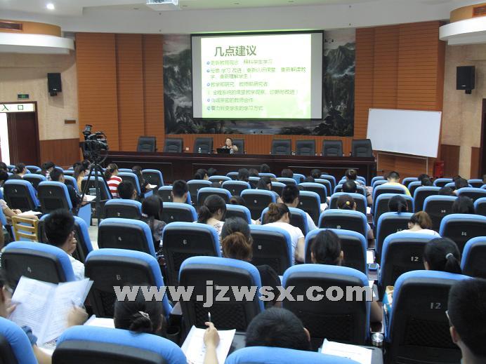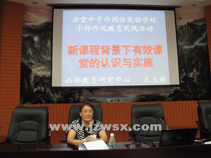 8月17日上午,金堂中学外国语实验学校特邀四川省新课程改革学科组长、四川大学外聘教授王玉瑶老师到校作了题目为“新课程背景下有效课堂的认识与实施”的新课程专题培训活动。