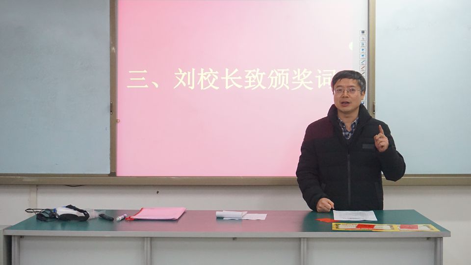 首先,刘校长、雷助理为飞跃1班的优秀同学颁奖并合影留念。周主任、代主任为飞跃2班的优秀同学颁奖并合影留念。颁奖结束以后,刘校长、周主任分别为两个班级致颁奖词,给同学们加油打气,并提出了新学期的希望。