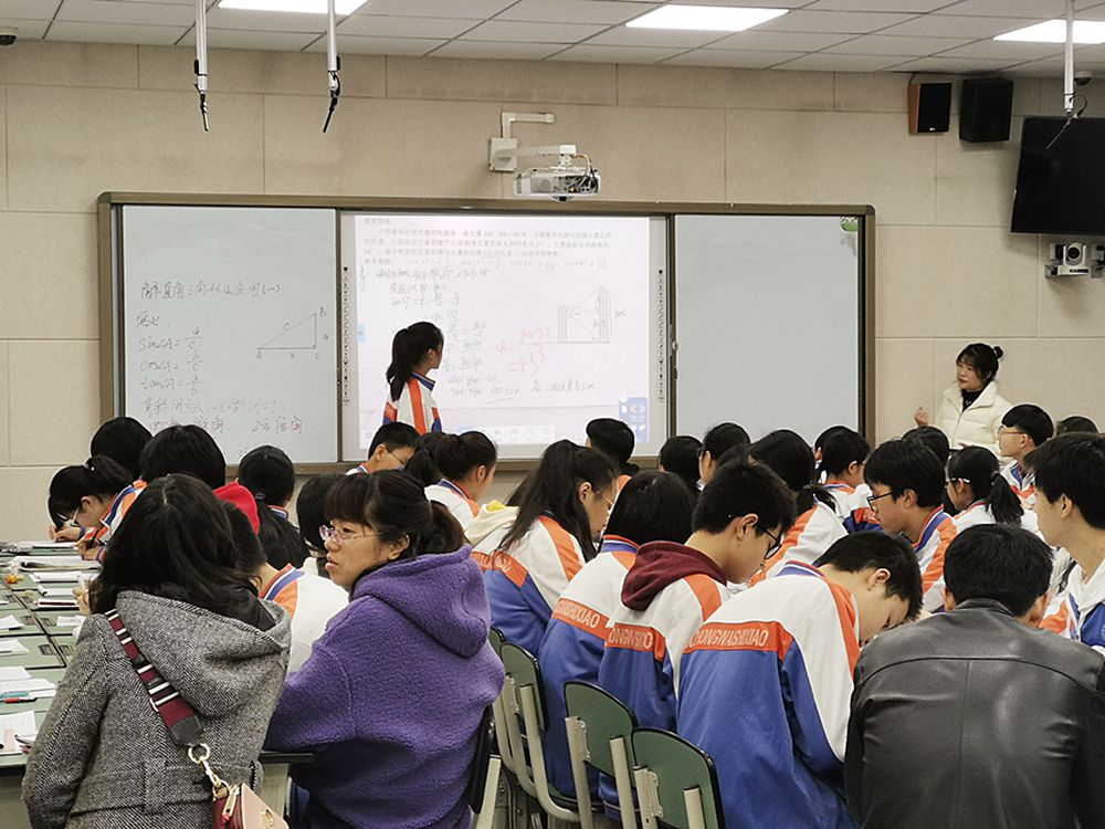 2019年3月14日,我校顺利开展新学期第二次数学组教研活动。今天的教研由李易老师所上的九年级复习课《解直角三角形及其复习》开始,结合上一周教研员张玉华老师的指导,李老师在板书等各方面进行了合理安排,使这堂课生动形象,并紧扣中考考点进行复习,高效而有序。