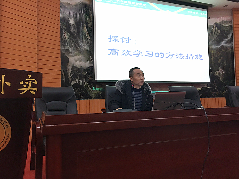 陈主任首先对同学们在上学期所取得的优异成绩表示了祝贺,同时也提醒同学们不要因为取得了小小的成绩而骄傲自满,要戒骄戒躁脚踏实地的争取更大的成就。紧接着,陈主任通过一些寓言故事告诫同学们:成绩的取得不是一早一夕的事情,也不是轻而易举的事情,同学们只有不断的认识自我,坚持不懈的完善自我,才会不断地进步,不断地登上学习的高峰。最后,陈主任还给同学们分享了好的学习习惯和方法,同事也鼓励大家总结适合自己的学习方法。