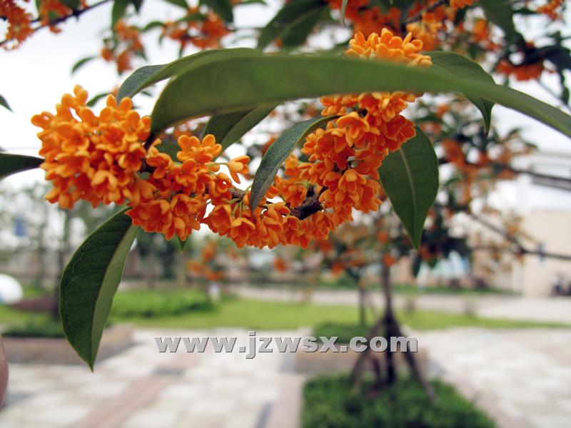 这么浓的香,却是由一朵朵小小的花散发出来的,花儿出奇地小,只有小指甲盖的三分之一大小。可是,花朵儿们很团结,一朵紧挨着一朵。每一小簇都是由十几朵甚至几十朵小花组成的,它们都奉献出自己的香,拧成一股股结实的香绳,沁人心脾,令人流连忘返。花儿的颜色也很朴素,金桂是橘黄色的,银桂则是略带淡黄的白色,美丽极了。