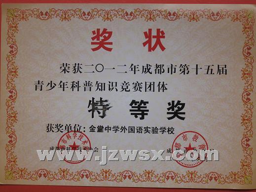 1. 成都市第十五届青少年科普知识竞赛团体特等奖、县团体特等奖,学生获市一等奖21名、市二等奖53名、市三等奖84名。