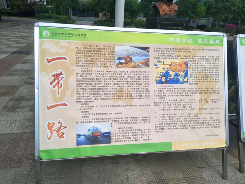 近日,金堂中学政治组结合本学科特色,组织“一带一路”宣传。本活动旨在体会中国传统文化底蕴,增强学生的家国情怀感受。