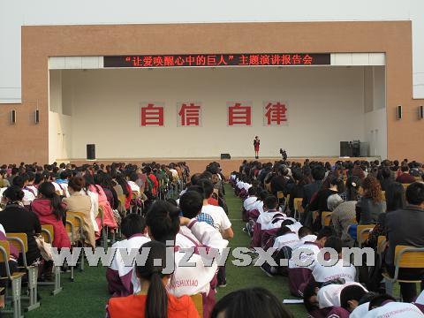 11月2日下午2:30,金堂中学外国语实验学校邀请深圳道弘教育集团高飞教授到校演讲,学校师生及学生家长近6500人聚集于学校运动场,认真聆听了“让爱唤醒心中的巨人——孝顺父母、感恩老师、改变自己”的专题演讲会。