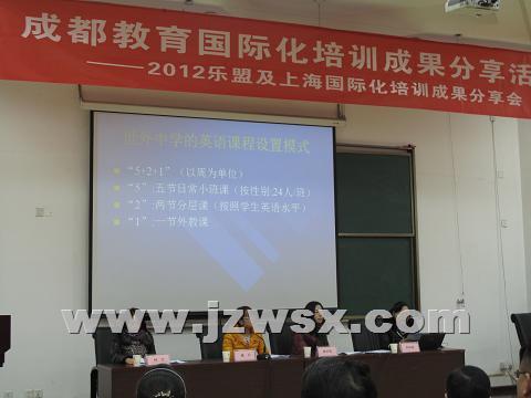 赴乐盟和上海的参培教师代表们分别交流汇报了培训过程中他们在教学理念和课程设置、校园文化、教师团队和有效课堂等方面的感悟和收获:在成都教育国际化的大背景下,英语教师应该不断更新教学理念,尽可能多地为学生营造英语语言学习的氛围,努力唤醒和丰富自我,注重教师的专业内涵发展,以活动为载体,体验、习得语言,优化教学过程设计,提高语言复现率,巧妙拓展文本材料,与生活实际接轨。