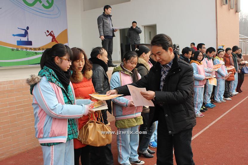 2013年1月11日下午,学校初2013级召开第二次月考表彰会,对年级优秀学生进行了表彰奖励。年级全体师生、受表彰的同学家长参加了这次大会。表彰会上,主持工作副校长聂晓云发表了重要讲话,他首先代表学校向为学生的成长进步而勤奋耕耘、默默奉献的老师们表示衷心感谢!向取得优异成绩的同学、进步很大的同学表示热烈的祝贺!更向取得优异成绩的同学家长表示真挚的祝贺。最后聂校长希望同学们要认真总结这次考试,认真分析得与失的原因。要正确面对成绩,不骄不躁,保持积极向上的良好心态。要发扬勤奋学习、刻苦钻研的拼搏精神,抓紧一切可以利用的时间,刻苦学习,奋力拼搏。同时希望同学们要努力养成科学的学习方法,提高课堂效率。调整自己的学习,抓薄弱学科、促学科平衡,找寻自己的最佳学习时间,取得最佳的学习效果。