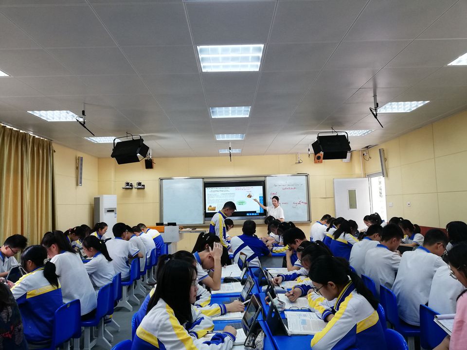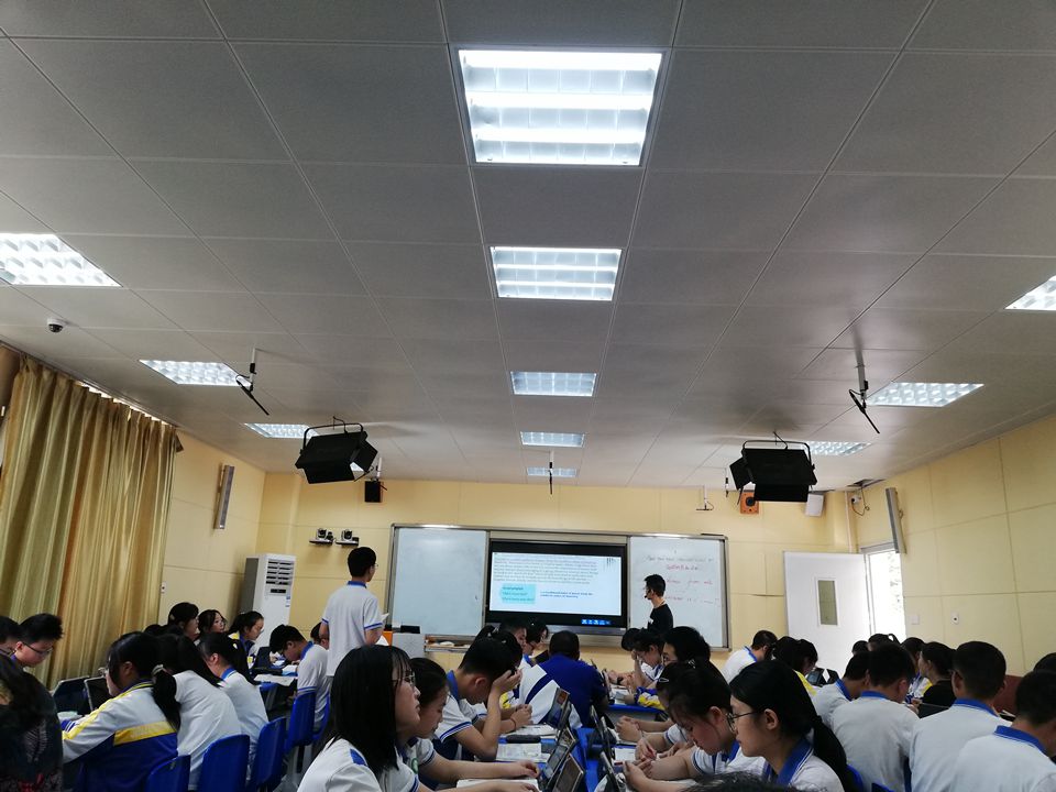 6月18日上午9点50,金堂中学外国语实验学校英语教研组的三十多名英语教师汇聚在录播室,一起观摩学习由杨俊老师和钟寿根老师带来的两节阅读课。