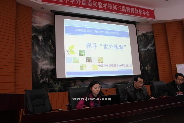 会上,李燕老师就少教多学在语文阅读教学中的策略和方法研究课题作了开题报告,该课题是全国教育科学“十二五”规划教育部规划课题金堂中学外国语实验学校子课题。随后,我校外出参观学习的教师代表作学习交流,文萍老师和邹曦老师分别就远赴江苏海门和上海世界外国语中学观摩学习作了《研发卓越课堂,缔造完美教室》和《探寻英语教学的世外桃源》的报告,与大家作了经验分享交流。大会对2012年度教师获奖的个人和集体颁发了证书和奖金。