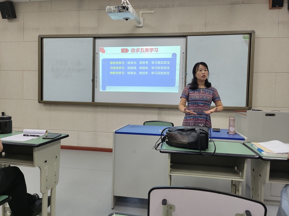 本次教研我们非常荣幸的请到张玉华专家为我们数学组做教研。在教妍开始前,刘校长通过对2016届与2019届以及2017届与2020届的各次成绩数据进行了对比,明确强调聘请外校专家参与教妍活动的重要性。张老师首先提问道“老师你们希望怎样的课堂?”,我们希望的课堂一是孩子们充满兴趣的学,二是老师们轻松愉快地教,做到这两方面便是幸福课堂。如何做到幸福课堂?张老师通过蒋维老师的一节示范课从五大方面进行了讲解,一是紧扣一个中心,要以学生为主体,教师为主导;二是关注两种状态,教师教的状态,学生学的状态;三是实现三个转变,被动(听看)——主动(讲做),个体(独学)——全面(多元);四是四大习惯,动口动手的习惯,问题驱动的习惯,典例示范的习惯,习得点拨的习惯;五是追求五类学习,体验性学习,习得性学习,讲解性学习,协作性学习,创生性学习。张老师指出我们要从过去的“教书匠”变为现在的“研究型教师”,提升上课观课议课能力。