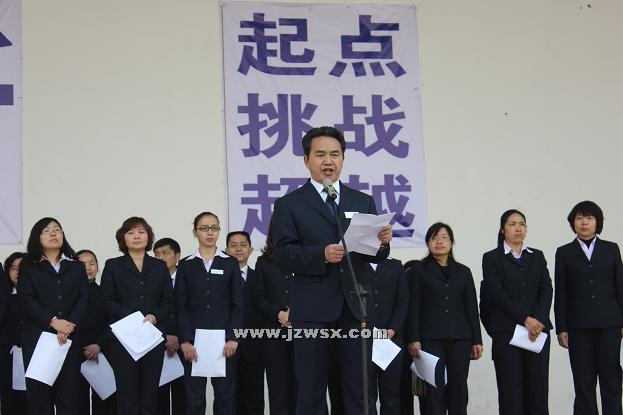 阳光照,春风拂,教师代表李玲老师激情洋溢的《师生同心,百日同行》,展示了2013级全体教师顽强的斗志、饱满的激情。我们相信,在这最后的一百天,教师们精彩的课堂、耐心的教诲将会伴随我们的同学走好一百天的每一个时刻。全体教师更是宣誓作学生的良师、益友,作孩子们坚强的后盾,和孩子们执手同沥风雨,相约共享甘苦,牵手共铸造辉煌。