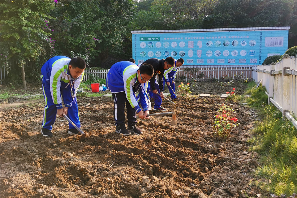 瞧,一群师生在金中外实校操场一角的生物园地里忙碌着,有的在挖菜窝,有的在发菜秧,还有的在浇水……原来生物园地社团的师生在种菜,开心农场种菜了!