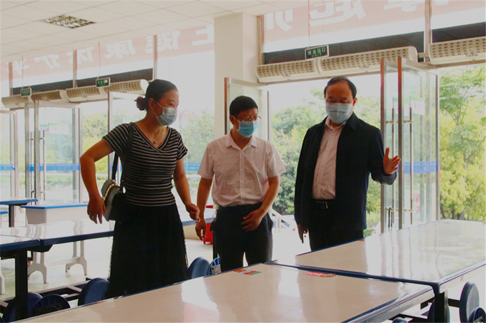 本次督导工作中,陈芬让、易佑奎督学在唐中福校长等学校领导的陪同下首先进行学校防疫物资准备,观察室、隔离室里面的防疫设施设备督查,了解学校师生到校情况,要求做好进校园体温检测,尤其是班级晨午检工作的落实,一定要加强行政监管,确保师生们的生命安全。