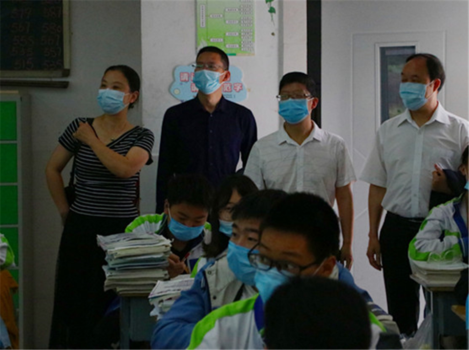随后,两位督学到教学区视导我校开学复课后的课堂常规,并对班级上课情况进行督查。各班师生均有序佩戴口罩并在墙上贴有外实校新冠疫情工作要求及相关知识,不仅让教师们高度重视疫情工作,同时也让学生们积极参与、配合。紧接着两位督学来到学生宿舍,了解他们的生活情况,鼓励师生在疫情当下要树立学习生活的信心,并对我校规范管理给予了肯定。最后强调:一定要高度重视防疫工作,不能有丝毫松懈,学有序推进,抓紧时间,高质量完成教学任务。