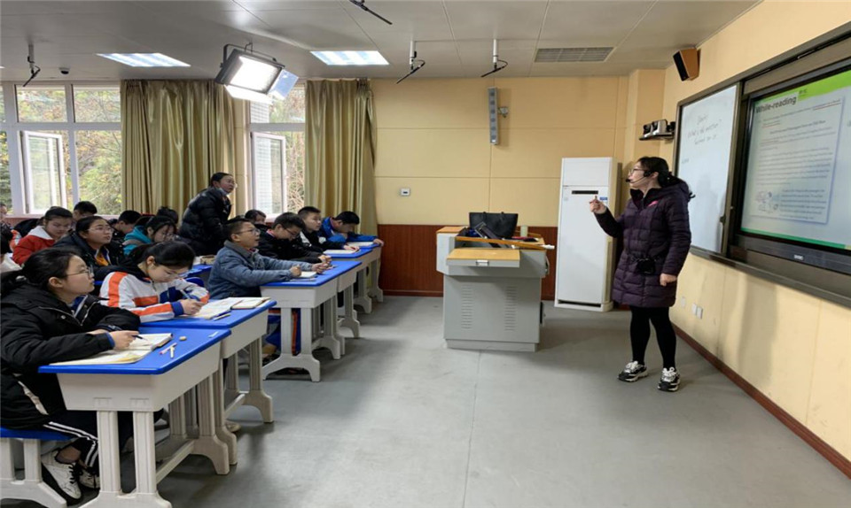 期间,杨老师用“问题驱动”式的教学模式逐步耐心引导,抛出问题,师生积极互动,课堂学习氛围浓厚且轻松愉悦,正向我们传达了“教师主导,学生主体”这一教学理念,同时也诠释了外实“春风化雨,润物无声”良好的教学风气。