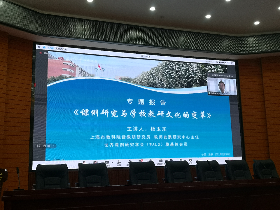 为进一步提高我校教育教学质量,培养学业优秀、 特长突出的学生,我校一直十分重视开展有效的教研和变革学校教研活动。3月31日下午,唐中福校长带领学校教务处相关人员、教研组长和课题组主研老师在线参加了由杨玉东教授《课例研究与学校教研文化的变革》专题研修讲座。