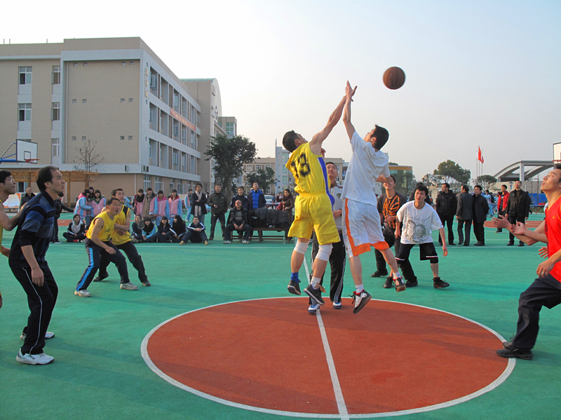 2012年元旦即将来临之际,为丰富教职工的课余生活,加强两校管理团队与教职工的交流与沟通,增进双方友谊,促进两校和谐发展,进一步加强了两校战略合作伙伴的关系。12月23日下午,我校邀请金堂中学代表队在我校举行了“庆元旦·促和谐”篮球友谊赛。