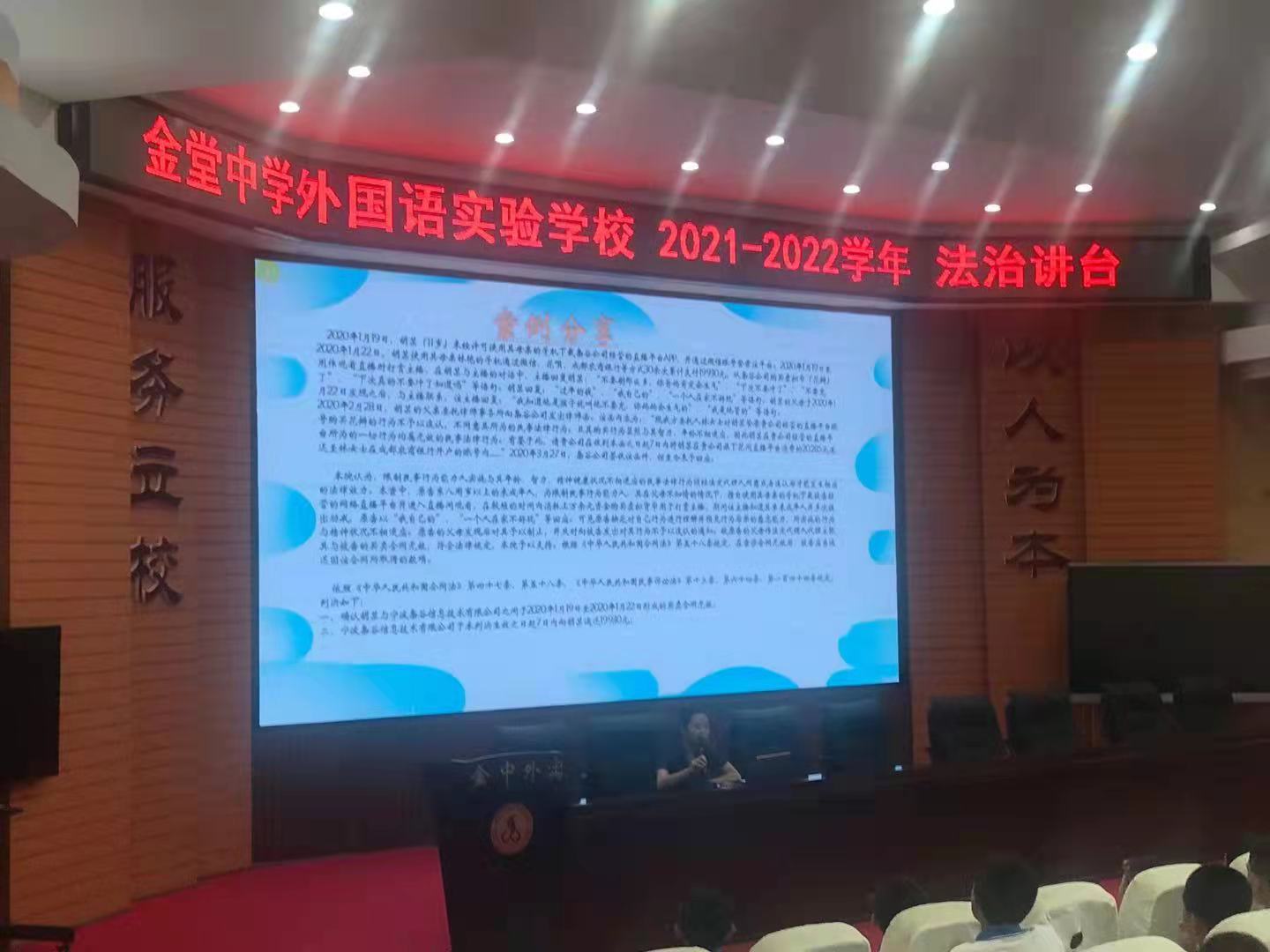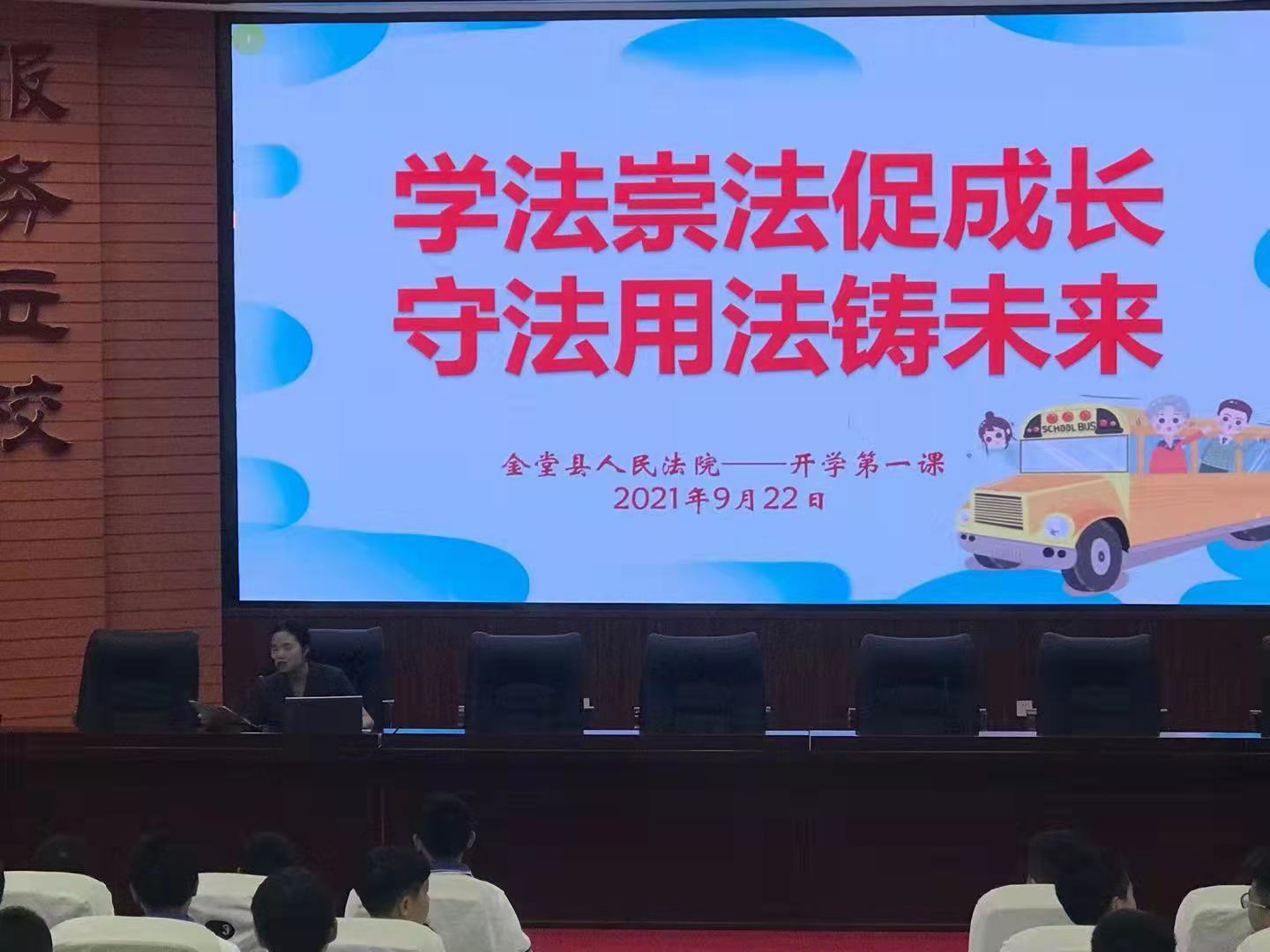 青少年是祖国的未来和希望,为提升青少年的法律意识,提高未成年人辨别是非的能力和自我保护能力,营造浓郁的法治氛围。9月22日,金堂法院组织干警走进金堂中学外国语实验学校,开展了“开学普法第一课”法治宣传活动。
