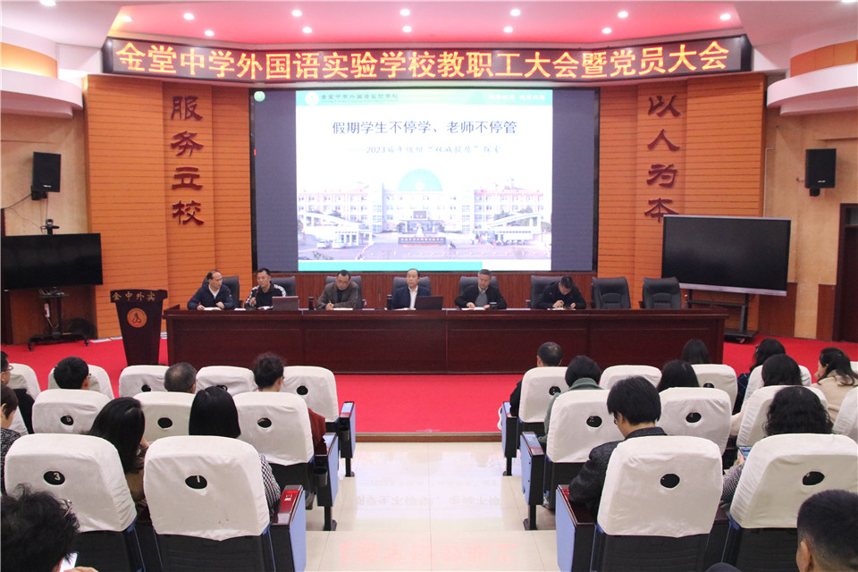 党员大会上,唐中福书记组织大家学习了《金堂县教育局关于贯彻落实习近平法治思想深入推进全面依法治县工作的实施方案》,并对相关工作进行了部署。他特别就教师在落实党的教育方针政策工作上的重要性进行了论述。教育是国之大计,教师是教育的主体力量,坚持立德树人统率人的全面发展,才能培养担当民族复兴大任的时代新人。他对所有党员同志们提出了希望:在工作中,从思想上对懈怠、违规等不良现象防微杜渐;不论是“双减”政策、五育并举还是五项管理,在每项工作的开始时,党员都应该勇挑重担,创优争先,把党员的先锋模范作用凸显出来。