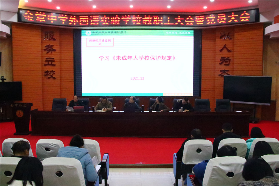 2021年12月13日下午,我校在学术厅召开教职工大会暨教师师德师风建设推进会,会议由办公室曾家洪主任主持,我校全体教职员工参会。