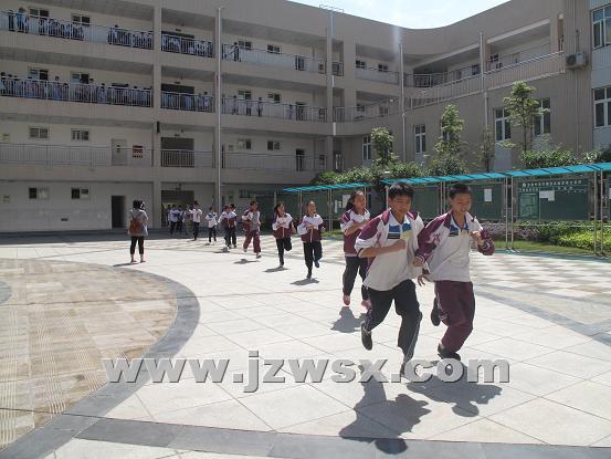 2013年5月10日下午15:00点,随着学校副校长王敏一声令下,拉开了金堂中学外国语实验学校师生应急疏散演练的序幕。全校3300余名师生在短短三分钟内,全部有序地疏散到了指定位置。