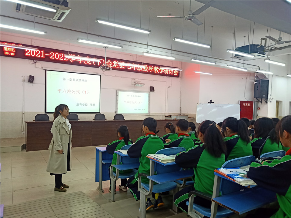 港青学校张洁老师和陆珊老师分别进行《平方差公式》的说课和研究课;两位老师教学风格鲜明,结合学生的实际情况,精心设计教学的各个环节,层层深入,引导学生从认识平方差公式到应用平方差公式,给大家呈现出精彩的课堂教学。