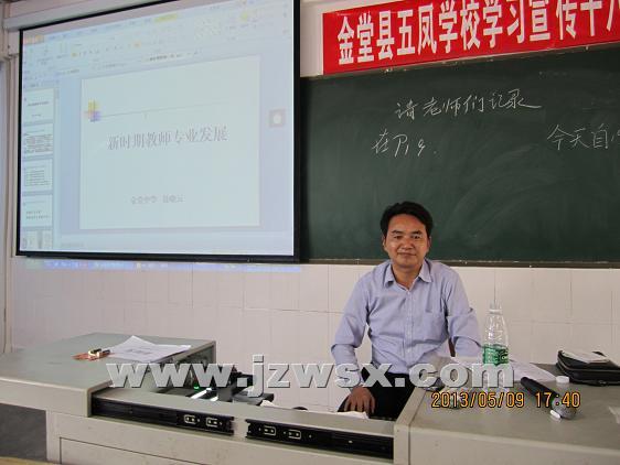 5月9日下午聂晓云应五凤镇学校的邀请,为全校教师作了《新时期教师专业化发展》的专题报告。就教师专业发展中的三个阶段和发展内涵等方面作了详尽的阐释,并以自己从教30年的历练和经验交谈了对教师敬业的认识,也对教师提出了:让自己的心灵变得丰富和深刻;捕捉自己生命中的每一次感动;不断给自己以积极的心理暗示;学会欣赏学生的每一个闪光点,给学生以真诚的鼓励等建议。