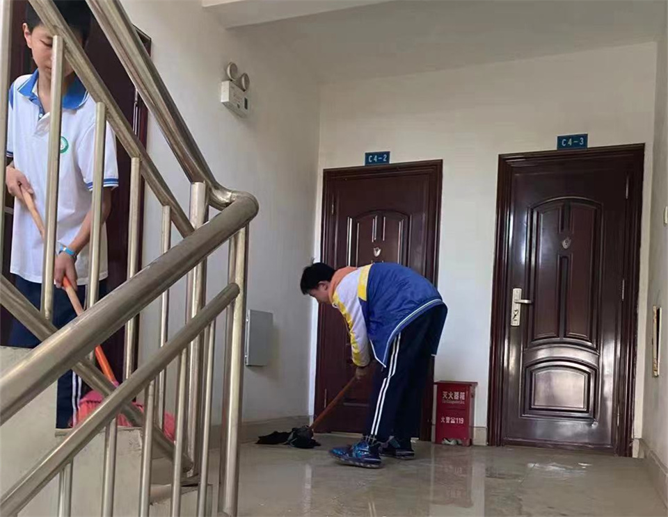 这项活动以文明守纪,热爱校园为主题,促进同学们精神文明建设和树立奉献意识。本次活动主要对教职工宿舍楼和楼前道路进行清理打扫。任务明确分工后,同学们积极迅速地投入到劳动中,他们发扬不怕脏、不怕累的精神,带着扫把,拿着垃圾袋,不断弯腰清理散落在地上的垃圾。学生在教职工宿舍进行全面细致地环境卫生大扫除,对卫生死角进行彻底清理,只为营造一个干净舒适的校园环境。