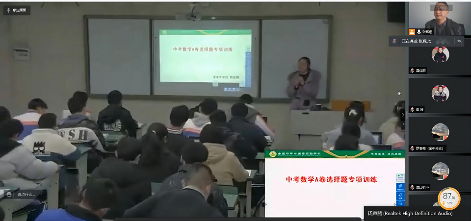 2022年3月4日,金堂县初2022届数学“一轮”复习教学研讨会在线上举行,我校初三数学老师集中在生物实验室参会学习。金堂县教研室张辉忠主任,关于我县数学成绩做了深入分析与数据处理,并对后面的数学复习,做出明确指示与复习方向。