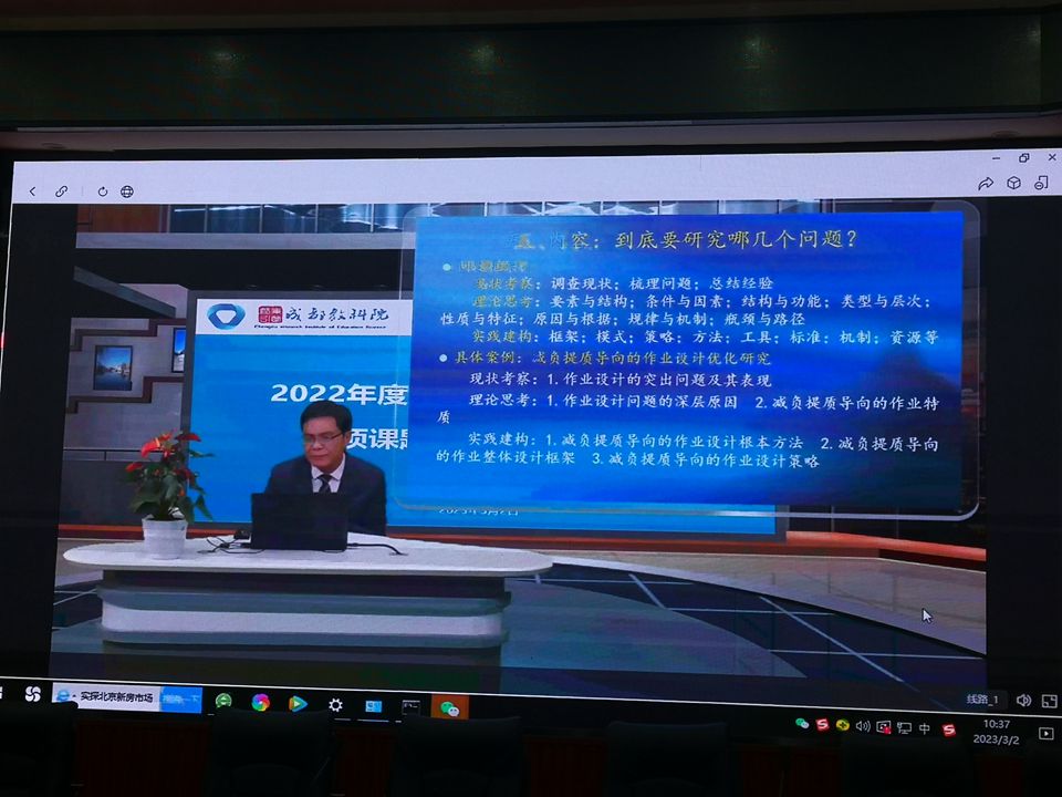3月2日,学校教务处陈主任携全校课题研究组成员参加了“成都市教育科研课题立项主研人员培训会”,会上李松林教授以“核心素养导向的学科实践育人研究”为例,用七个问题为导向,详细为大家讲解了如何做课题研究设计。李教授指出,首先科研人员应思考:拟解决的实际问题是什么?如何凝练一个好的题目?如何界定核心概念?要取得哪些预期成果?到底要研究哪几个问题?究竟如何开展调查?如何提炼研究特色与创新点?针对以上七个问题,李教授分别用实例论证了自己的观点,把一个个比较复杂的研究问题简单化了,也为一线教师做课题研究指出了可操作性的步骤。