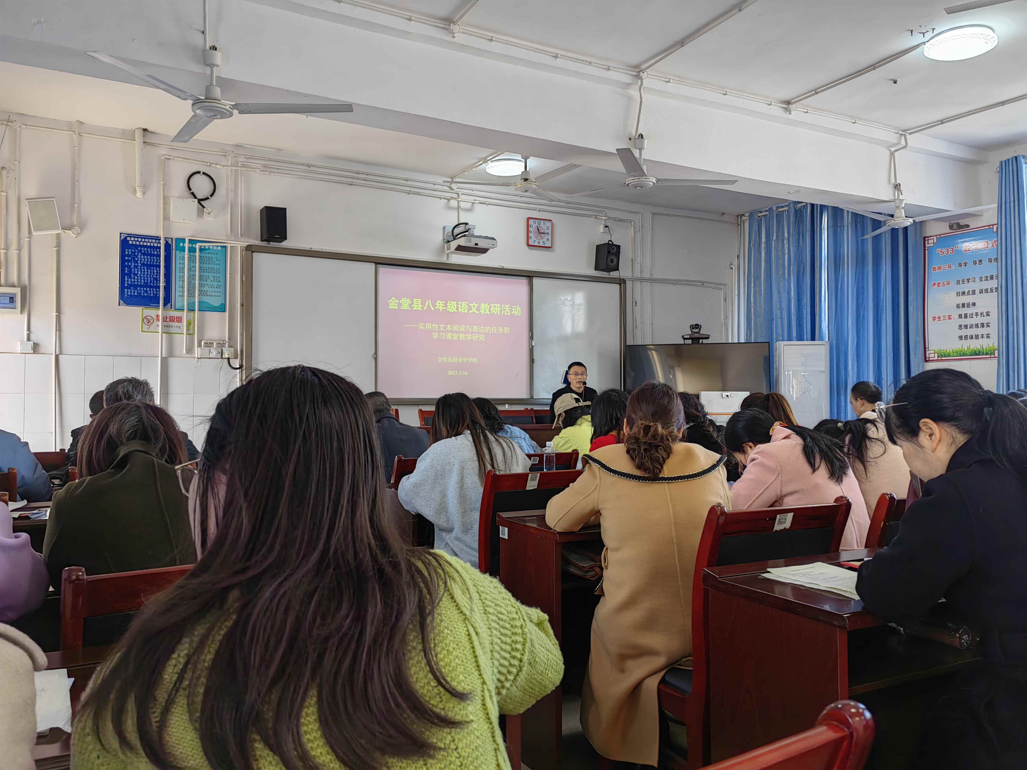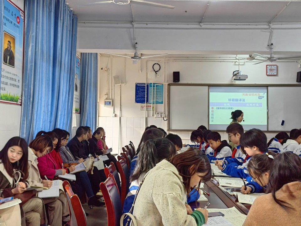间泮游鱼跃,和风待柳芳。在这春意满满的日子里,2024届语文组2023年3月16日齐聚赵家中学,参加金堂县八年级语文教研活动。本次活动主题为“实用性文本阅读与表达的任务群学习课堂教学研究”