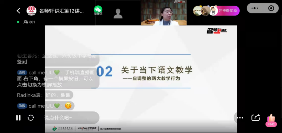 直播中,李攀崎老师就新课标的三个重要概念、两大变化和语文教学应该调整的两大教学行为两个方面进行了详尽的讲解,李老师强调语文课要注重学生核心素养的养成,要注重在真实的语言运用情境中积累、构建学生的积极的实践活动能力。对于新课标下指导的课堂教育,教师应该多关注碎片零散知识背后的结构、联系、规律,注重知识能力的应用和迁移,可以通过改变教学内容、改变教学方法,增加学生学习的内在动力等方式,来提高学生运用知识与能力去解决实际问题的能力。
