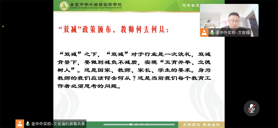 4月21日晚上7点举行了名师轩讲汇初中化学线上讲座,活动由成都市学科带头人、金堂县特级教师文俊福老师就《双减背景下提升初中化学课堂效益之策略》做分享与经验交流。金堂县化学教研员贺松柏老师、全体文俊福工作室成员及金堂县全体初中化学教师聆听了此次讲座。