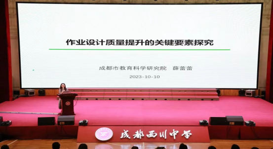 最后,成都市初中英语教研员薛蕾蕾老师总结本次教研活动并分享了作业设计的三个关键要素:理念、设计、学生视角。薛老师指出,作业是教学活动的重要内容,作业的设计与实施需要教师个人和团队的智慧与科学规划。作为一线教师,我们应带着这些问题,发挥才智,深入研究、不断改进,逐步形成作业典例,在英语作业研究的过程中不断提升专业能力。