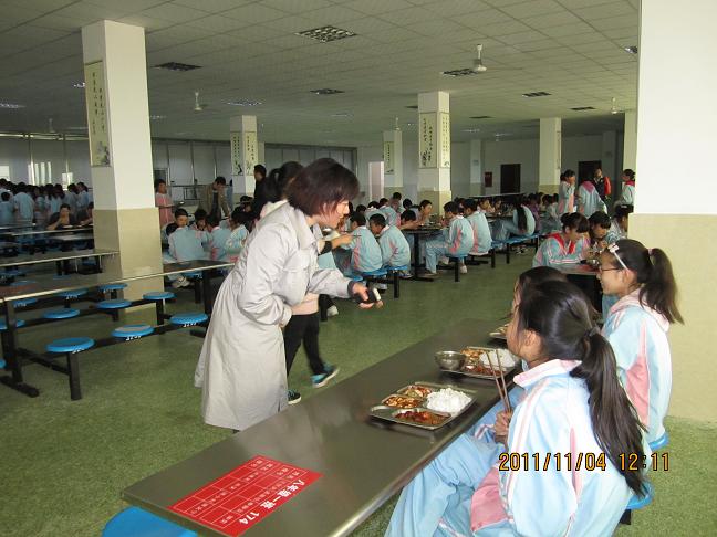 中午,万县长一行来到学校食堂,深入食堂的物品贮藏室、操作间及学生餐饭的整个流程作了详细的了解,然后她进入就餐区域与学生、老师亲切交谈深入了解学生就餐情况,并与学生一同就餐。