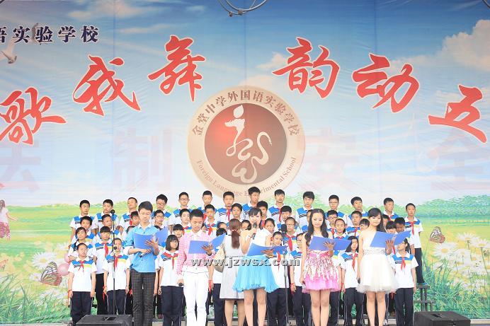 8:40,随着主持人的“一声金堂中学外国语实验学校‘我歌我舞●韵动五月’艺术活动月班级合唱比赛现在开始”,比赛正式开始,你听那歌声飞扬,或轻柔婉转的童年之声,或慷慨激昂的革命之声,亦或是轻快明亮的流行之乐。所有的这一切都让师生们沉浸在艺术美的享受中。不仅如此,此次合唱比赛的表演也形式多样:钢琴伴奏,更显高雅;舞蹈陪衬,方显华美;朗诵相伴,彰显气势,这一切都蕴含了七年级全体师生的辛勤付出,同时也展现出了他们的青春朝气。