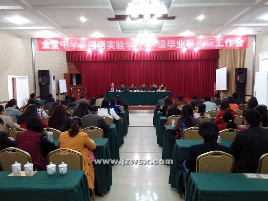 会议由分管德育工作副校长王敏主持。首先,由班主任代表陶兰群和雷李老师发言,他们主要从自己的班主任工作经验总结和未来工作重点两方面进行概括和规划。紧接着青年教师杨俊和吴莎莎作为学校新生教师力量代表教师发言,他们对教育教学提出了自己的见解和建议。然后学科教研组代表王锐、文俊福老师对9月月考成绩进行分析总结,并提出了未来教学的具体意见和措施。接下来,会议进行了最重要、最中心的环节,签订目标责任书。校长唐中福与2015级年级主任高英签订了2015级目标责任书,高英主任并郑重承诺将不惜一切努力,保证完成目标工作,再创学校辉煌。之后,教务处主任徐传文,提出“析”与“添”二字工作方针,即通过现状分析,添加有针对性的强有力的措施,抓过程,创佳绩。分管教学副校长聂晓云在会上讲话,他要求年级所有教师要树立信心,既要看到成绩,更要正视差距,要辛勤耕耘,殚精竭虑,要不甘落后,认清形势,找准目标,完成任务。最后,学校校长唐中福作总结发言,他殷切期望全体教师务必要“坚定”与“坚持”,务必要坚定完成目标工作的信心、决心、责任心,务必要坚持我校优良的传统“早、细、实、严”,相信在学校行政的坚强领导下,在全体教师的共同努力下,2015级毕业班定能够成为金中外实校发展新的里程碑,为把我校发展建设成为成都市知名初级中学打下坚实的基础。