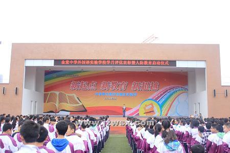10月17日上午10时许,金堂中学外国语实验学校在运动场举行了学月评优表彰暨人防教育启动仪式,全校约3000名师生参加了大会。