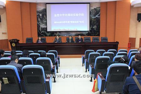 10月21日,金堂中学外国语实验学校2014-2015学年度教师“师徒结对”仪式在学校学术厅举行。此次师徒结对共有59对教师,涉及语、数、外等所有学科。