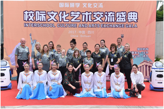 下午2点,2017校际文化艺术交流盛典在金沙剧场举行,澳大利亚领事馆、法国领事馆、美国宾夕法尼亚州普朗姆学区教育局、澳大利亚希尔斯国际学院受邀参与盛典。我校英语老师卢孝艳老师和唐倩老师带领学生们一起参加了这次校际交流活动。