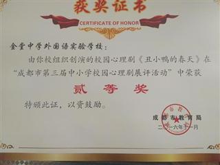 我校《丑小鸭的春天》获成都市第三届中小学校园心理剧展评二等奖